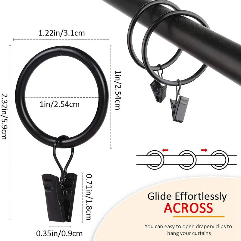 To meet the exact requirements in the best possible manner, these brass curtain rings are dedicatedly manufactured. 2 inch metal curtain clip rings, set of 14. Determine the panels' finished length, in inches, by measuring from the top of the curtain rod to the desired bottom point using a metal tape measure. 2 inch x 20pcs curtain rings drapery window with clips black metal. These home details collection decorative drapery rings in antique brass bring a touch of elegance to any room while holding up the lovely curtains of your choice.